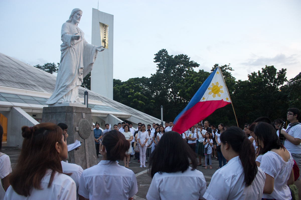 Ateneans stand in prayer on eve of Marcos burial oral arguments