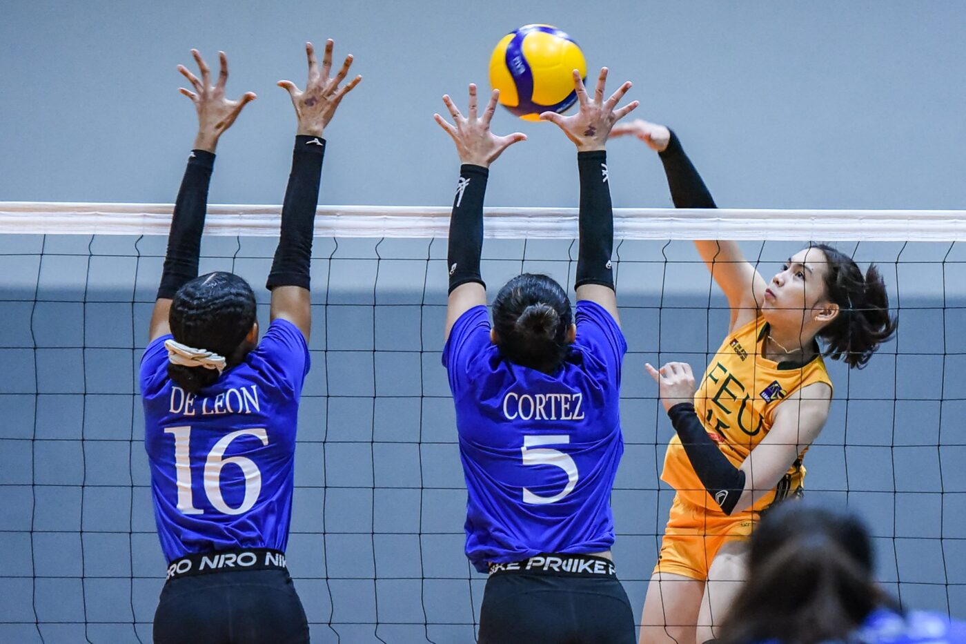 The Blue Eagles found themselves at an early deficit to start the third set, until a cross-court attack from Nisperos powered through the FEU defense, 1-3. Grydelle Matibag and De Leon locked in for crucial attacks of their own in the effort to force a deadlock, 5-4. Both squads continued to exchange kills, 7-5, until De Leon finally found the breakthrough with an impressive ace, 7-7.