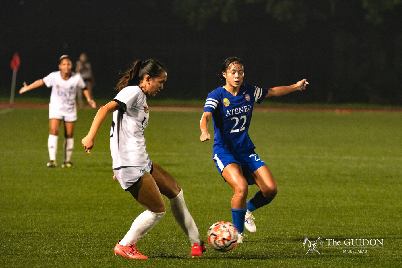 Down one, the Blue Eagles attempted to create an attacking opportunity after play restarted, but their tactics immediately backfired. Giving up possession, the Blue and White failed to stay vigilant on the defense, as Rebosura made a solo run down the flanks for a goal in the 33rd minute, 1-3, sparking a surge of offense for the Lady Tamaraws.