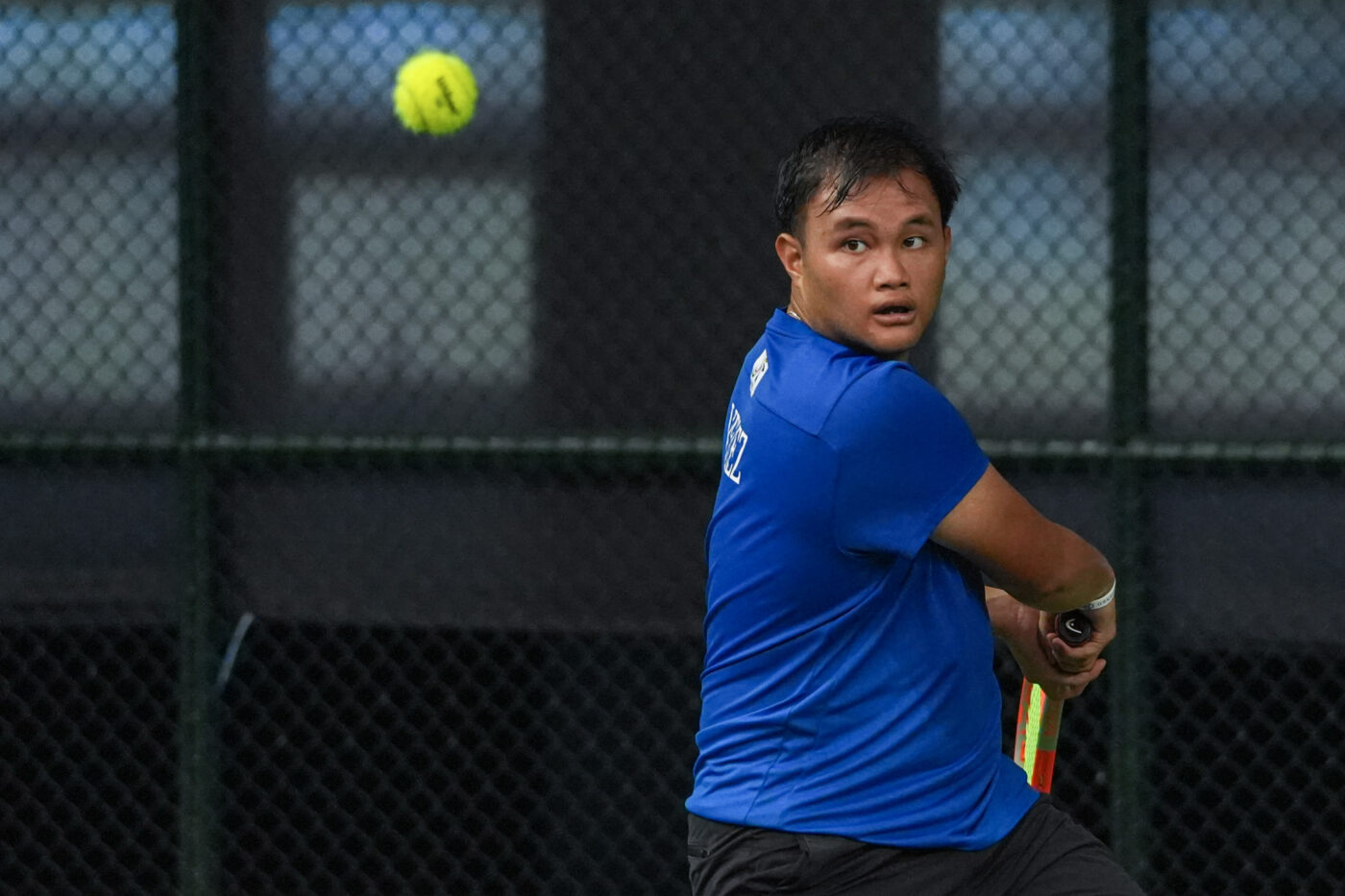 Looking to avenge Pabilorre’s defeat, JD Velez represented the Blue and White against NU’s Kristopher Espinosa. Velez made quick work of his opponent, using power on his forehand to achieve victory in the first set, 6-2. In similar fashion, the team captain continued to showcase his impeccable offensive prowess, using his excellent forehand to win the second set, 6-2.